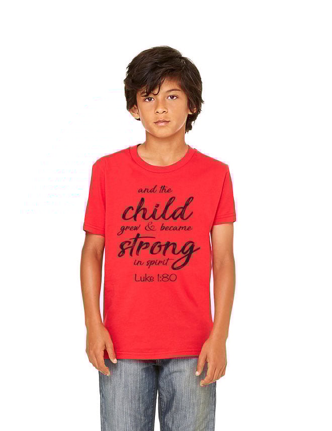 navy shirt with white design red shirt with black print youth size crew neck short sleeve 4.2 oz., 100% combed and ring-spun cotton